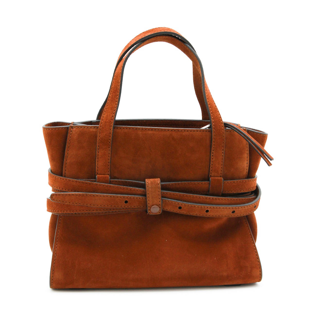 BROWN LEATHER TIE ME TOP HANDLE BAG