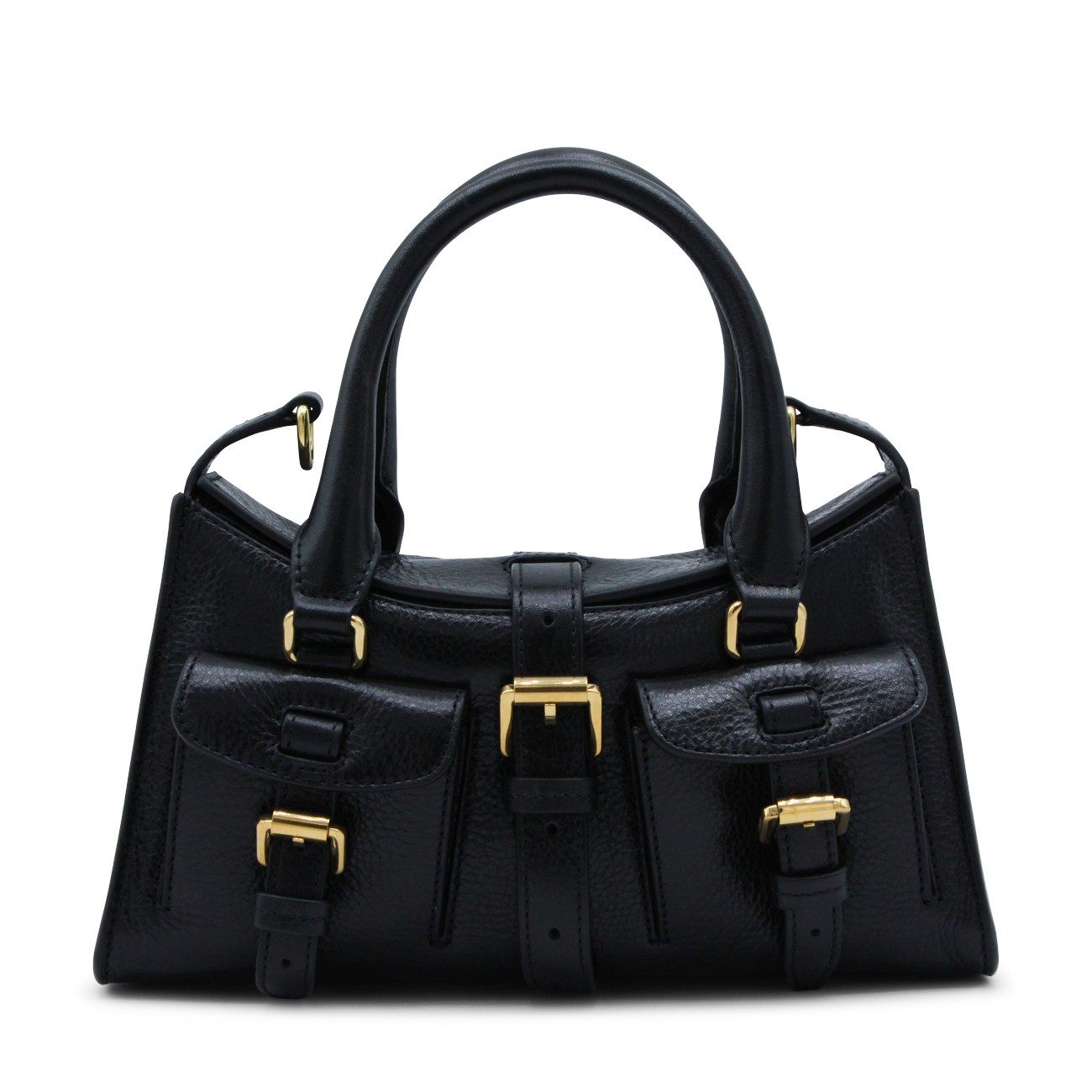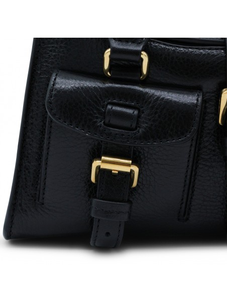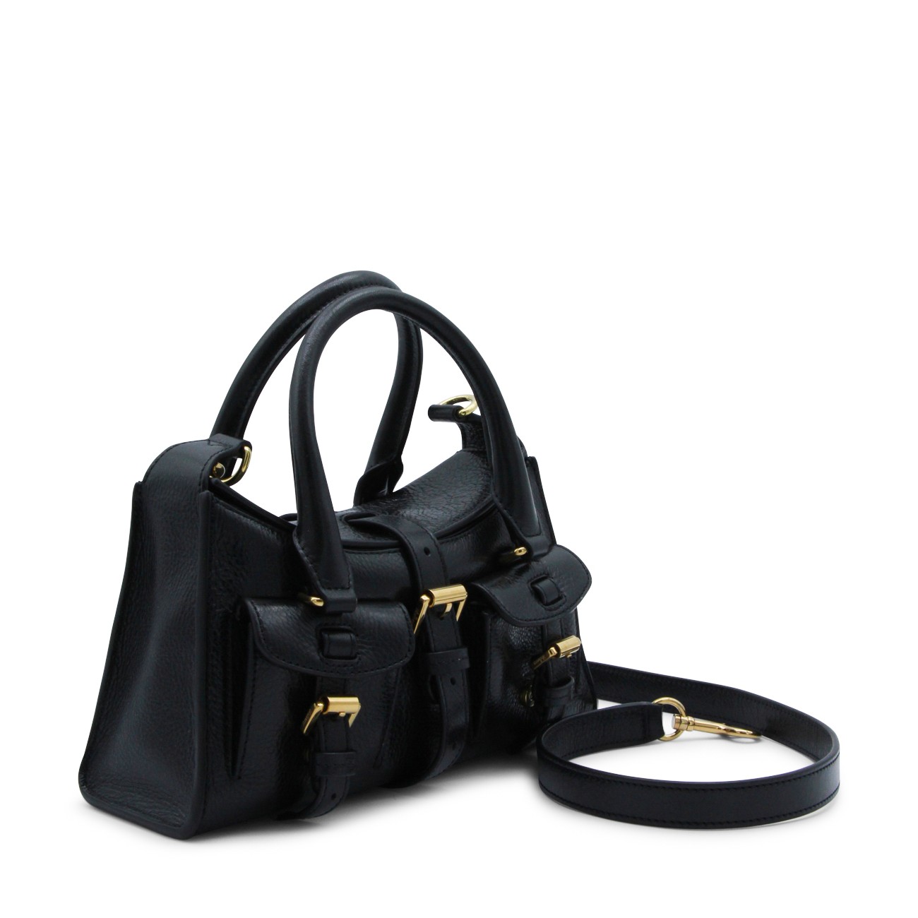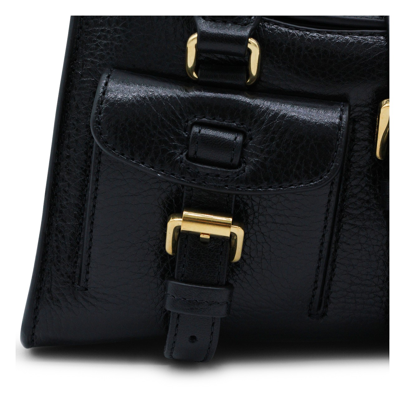 BLACK LEATHER MINI ROXANNE HIGH SHINE TOP HANDLE BAG