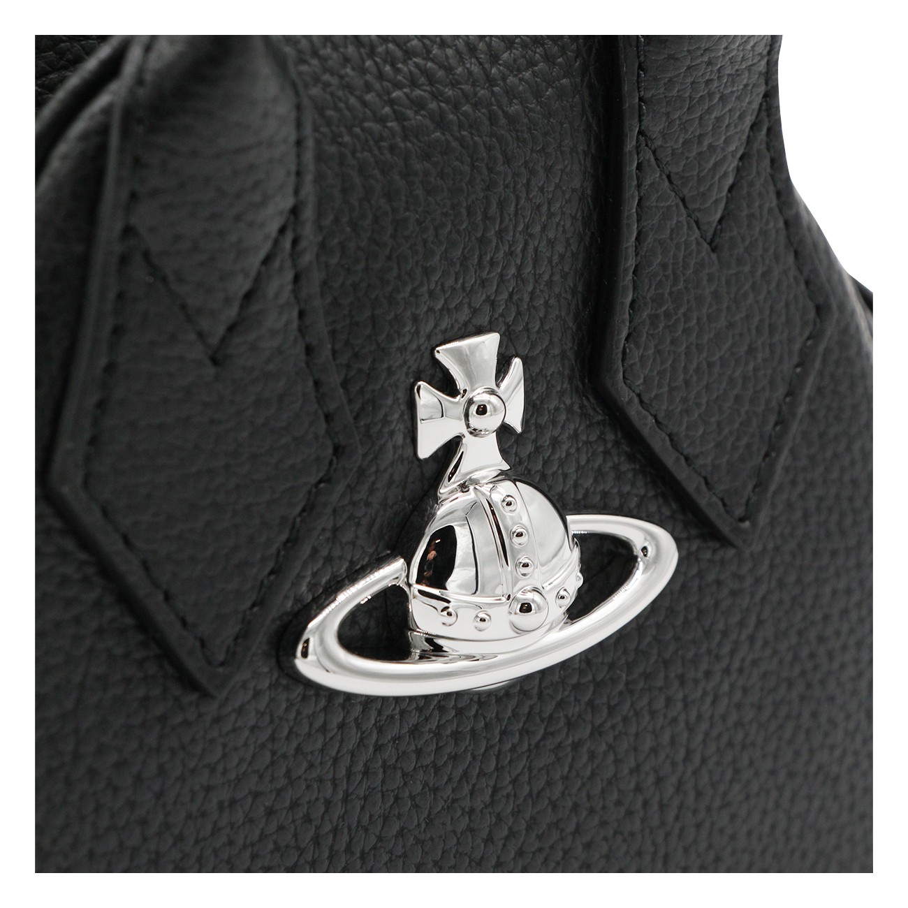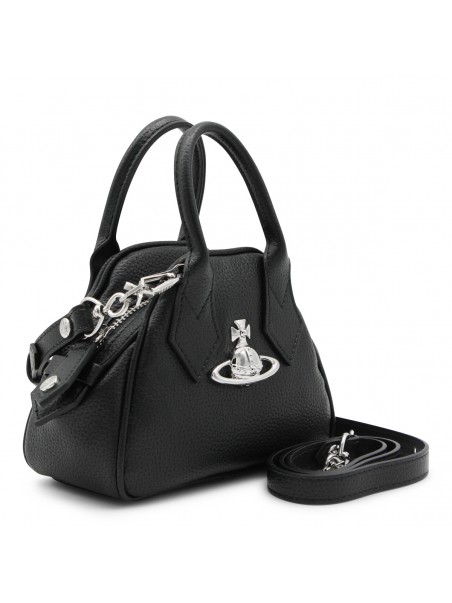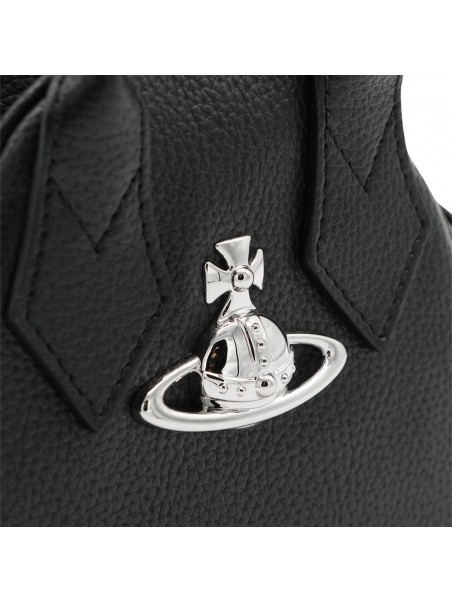 Black top handle bag from Vivienne Westwood featuring top handles, zip fastening, main compartment, removable strap and frontal silver tono logo.