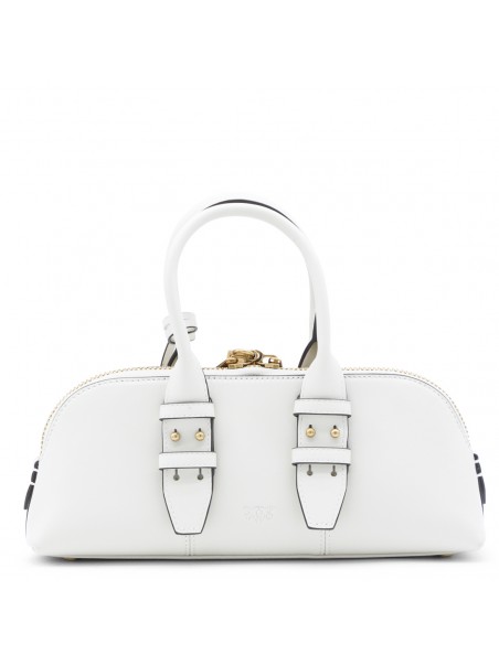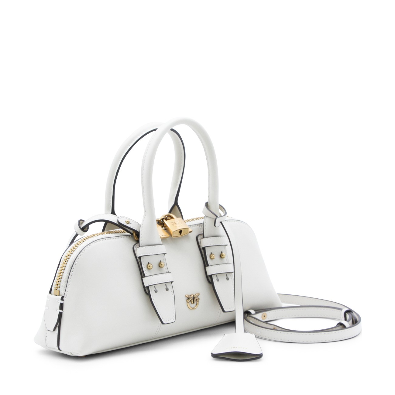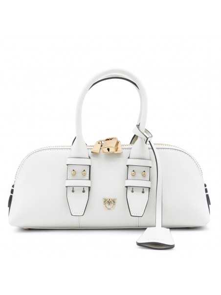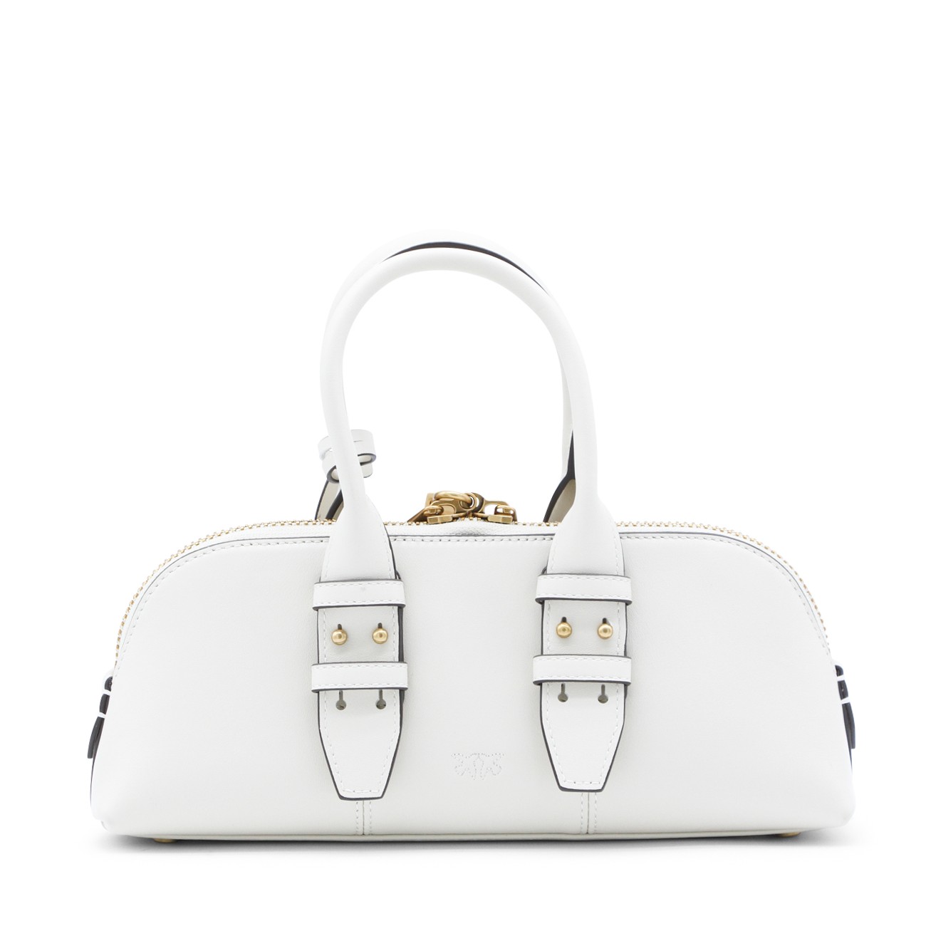 White Bowling bag top handle bag from Pinko featuring top handles, zip fastening, gold tone hardware and details.