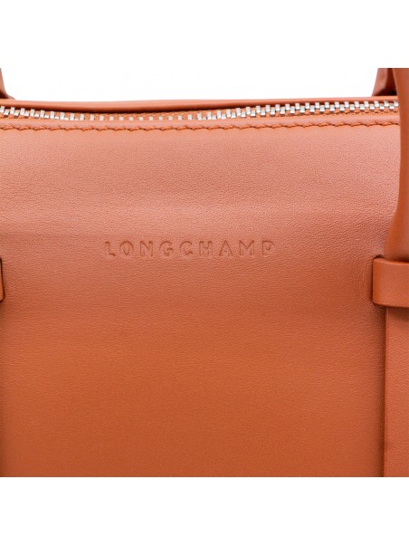 Brown leather M Daylong Tote bag from Longchamp featuring top handles, zip fastening, adjustable and removable strap and silver tone hardware.