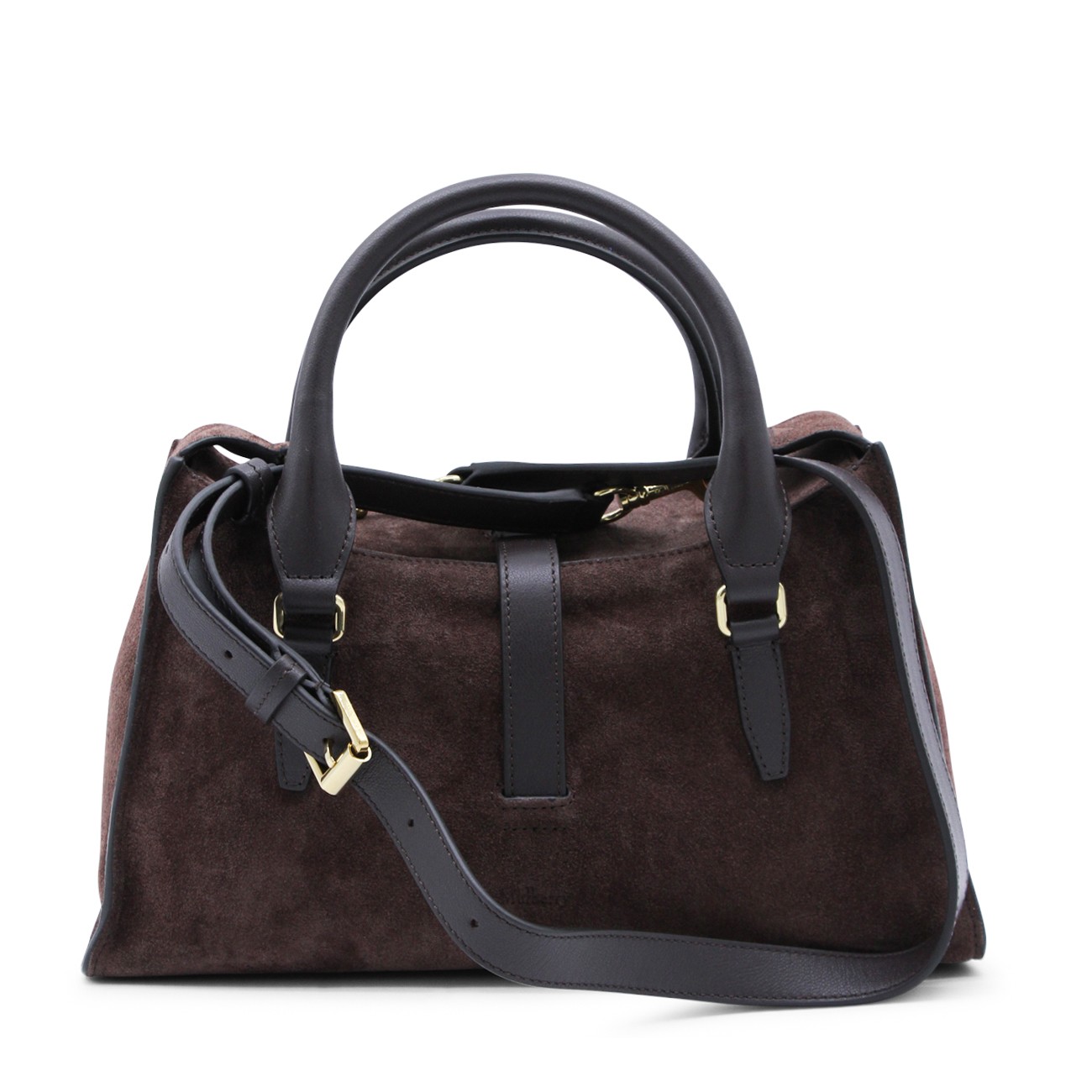 CHOCOLATE LEATHER SMALL ROXANNE SUEDE TOP HANDLE BAG