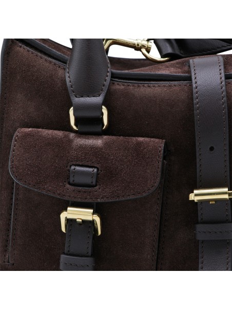 CHOCOLATE LEATHER SMALL ROXANNE SUEDE...