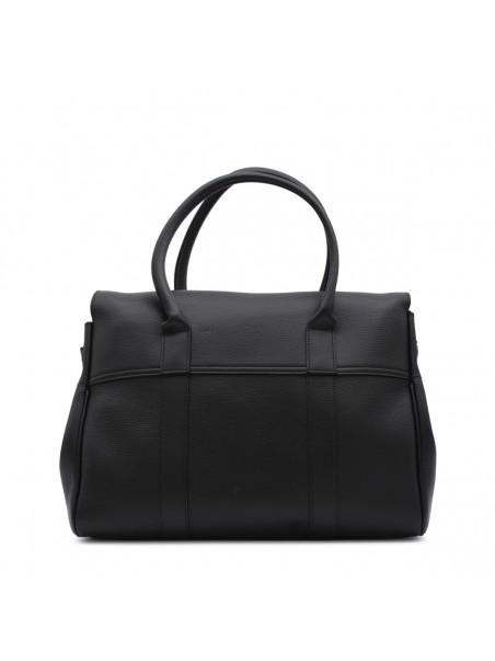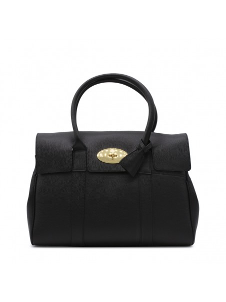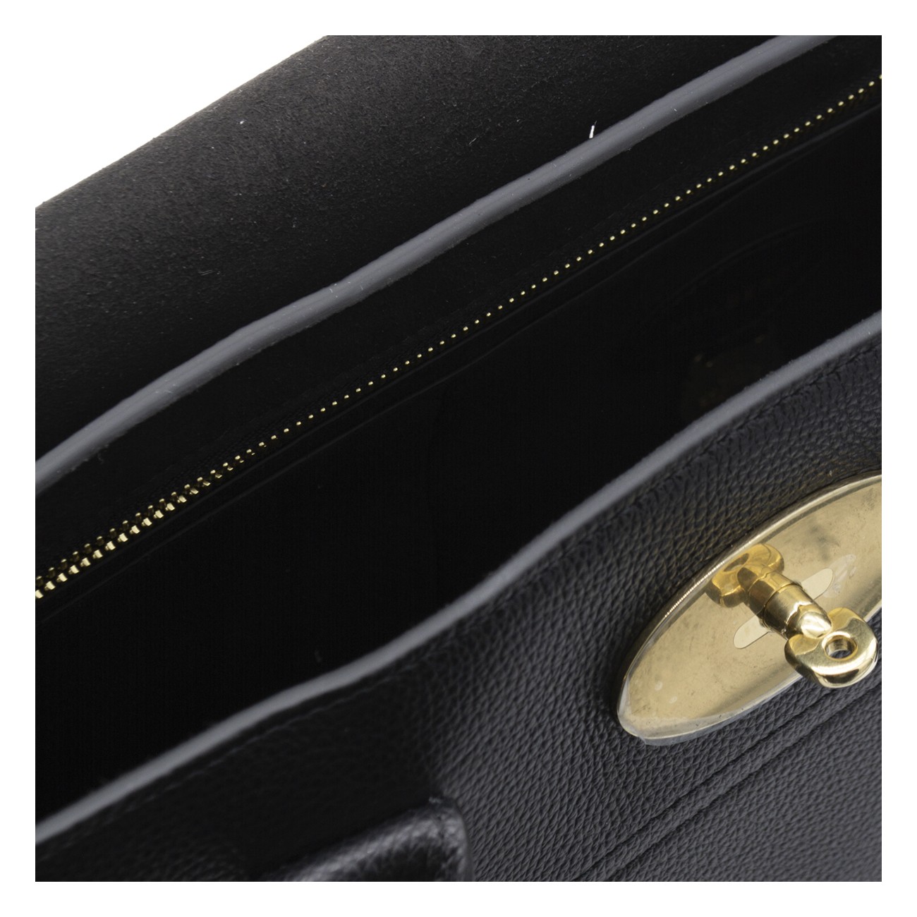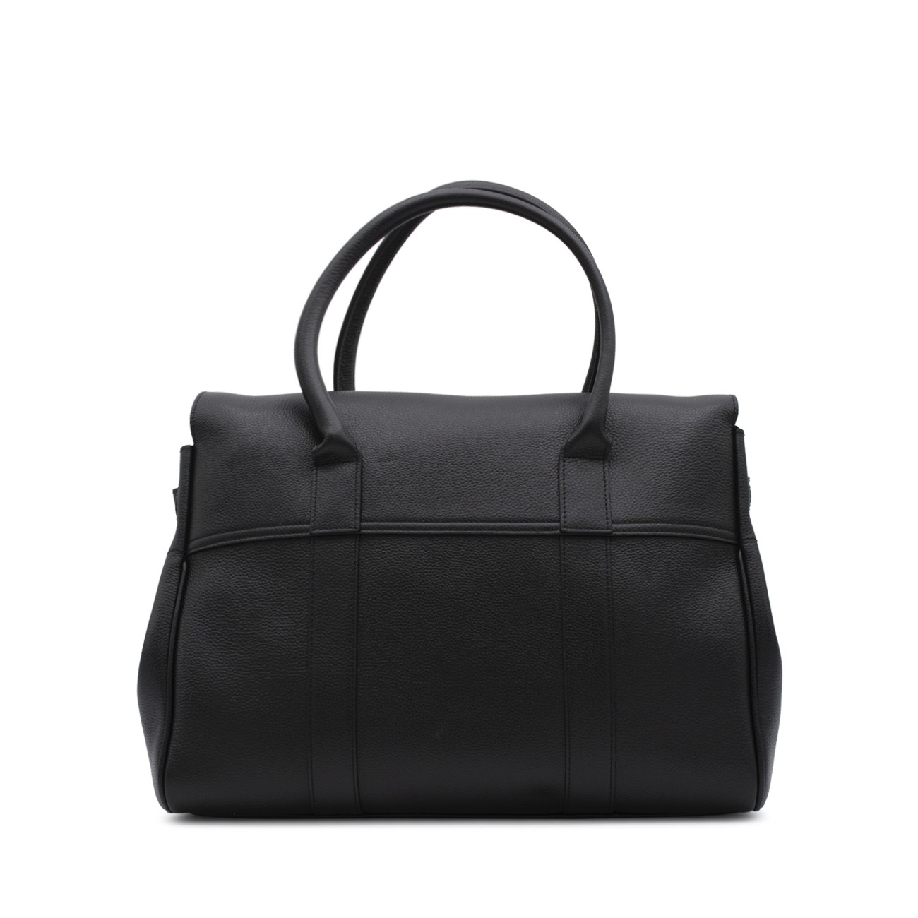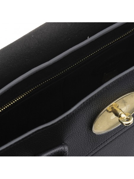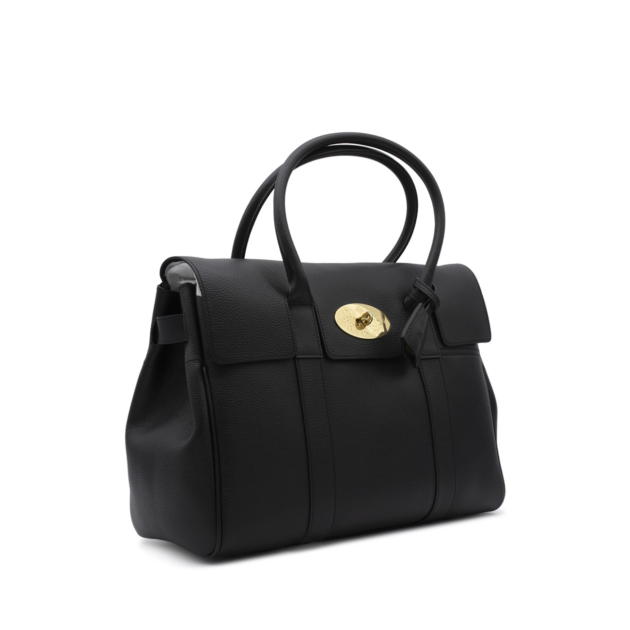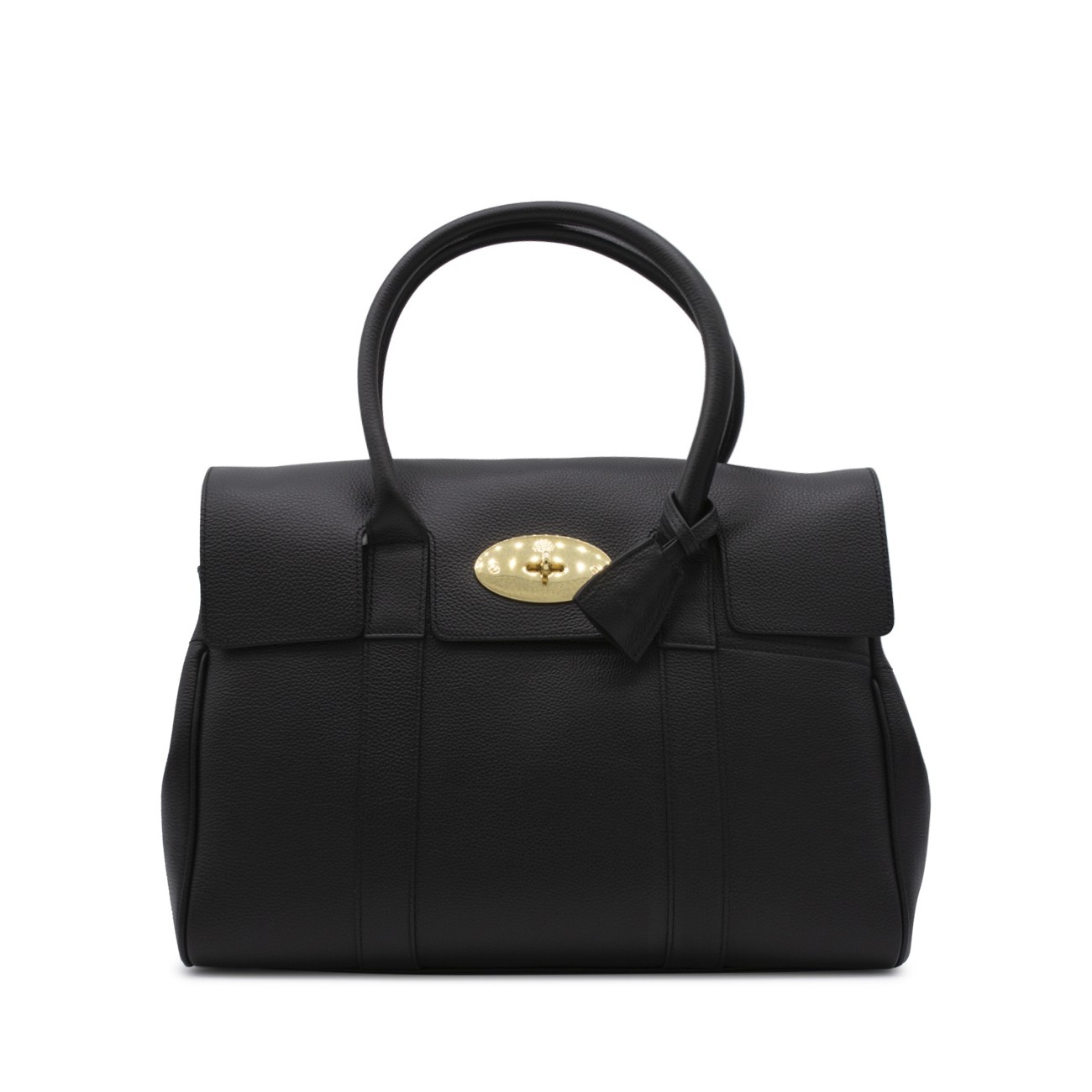 Black Babywater small Classic grain leather top handle bag from Mulberry featuring top handles, frontal fastening, gold tone hardware and internal compartments.