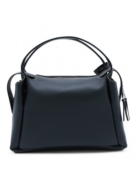 BLACK LEATHER TOP HANDLE BAG