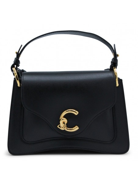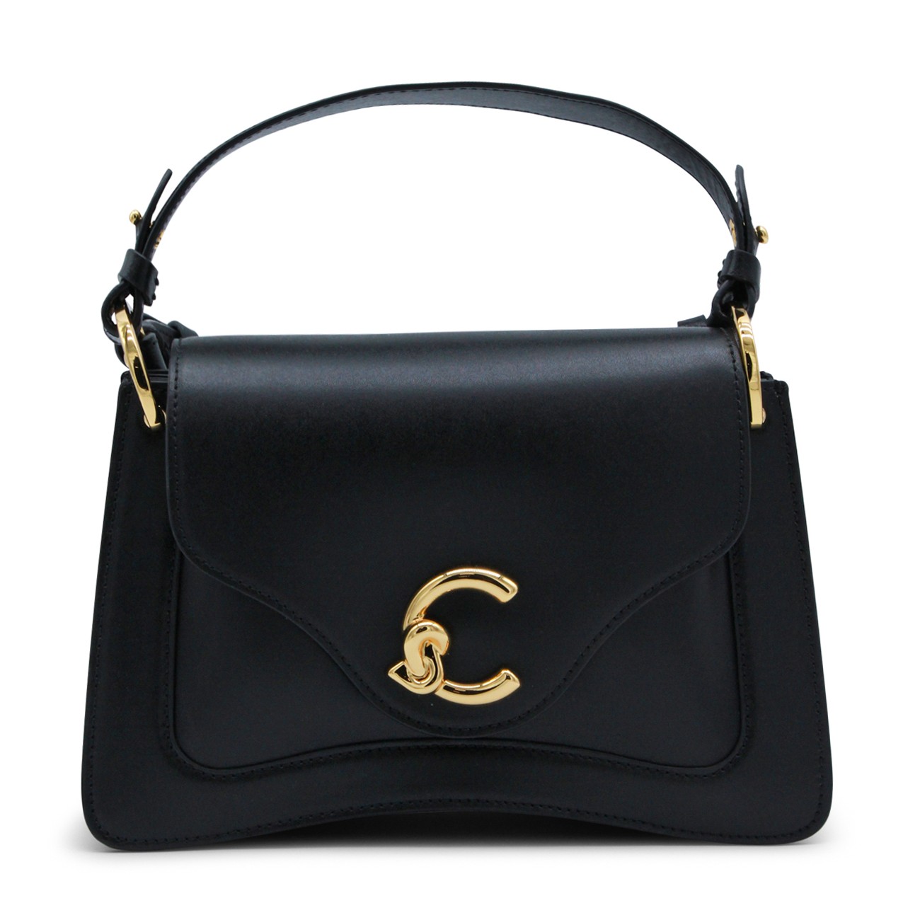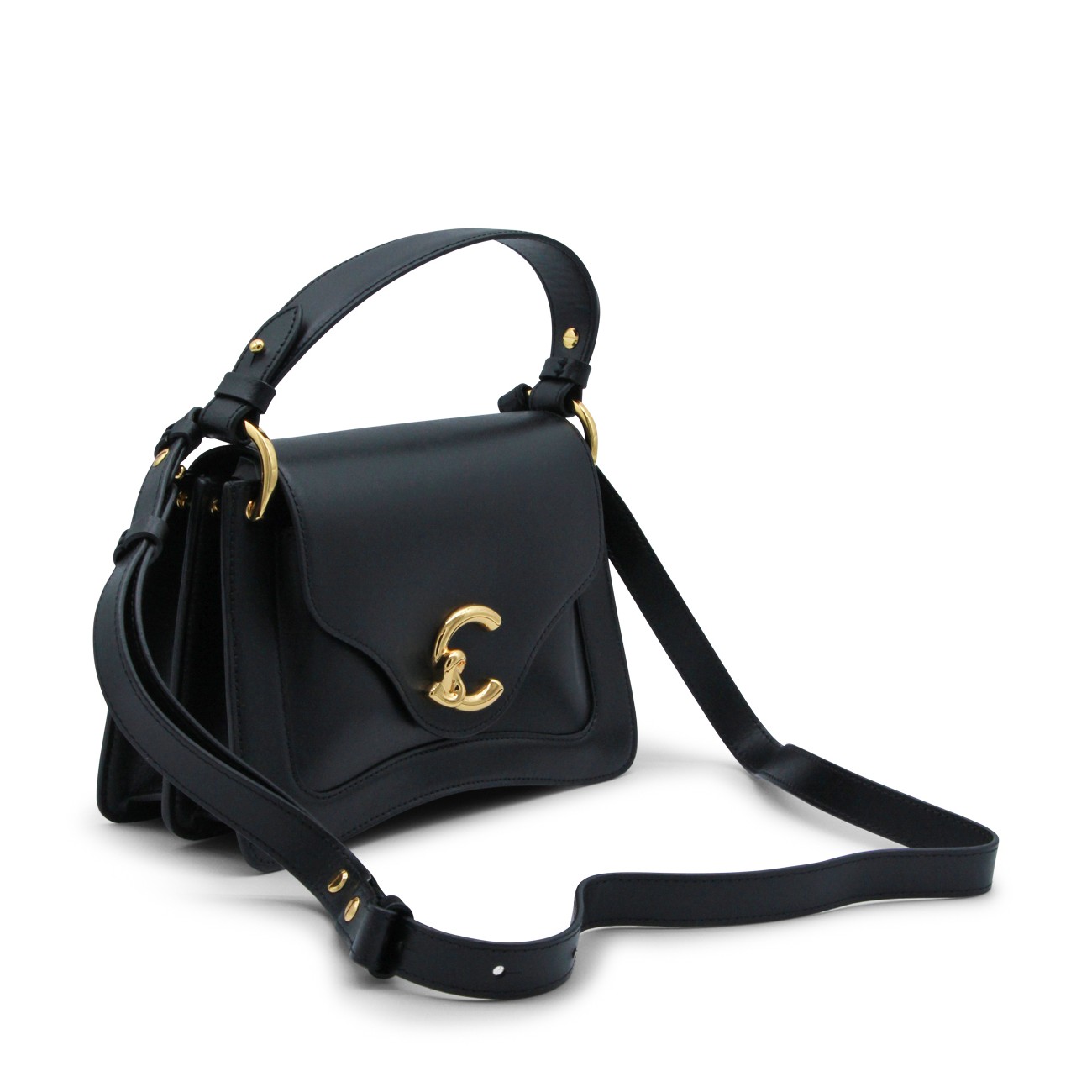 BLACK LEATHER C-ME CALF COCKER TOP HANDLE BAG