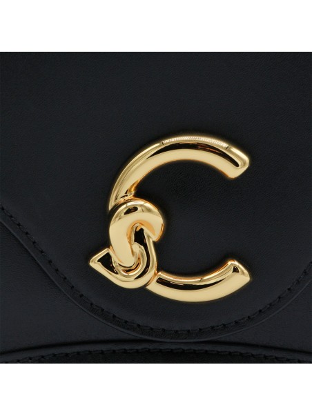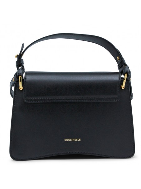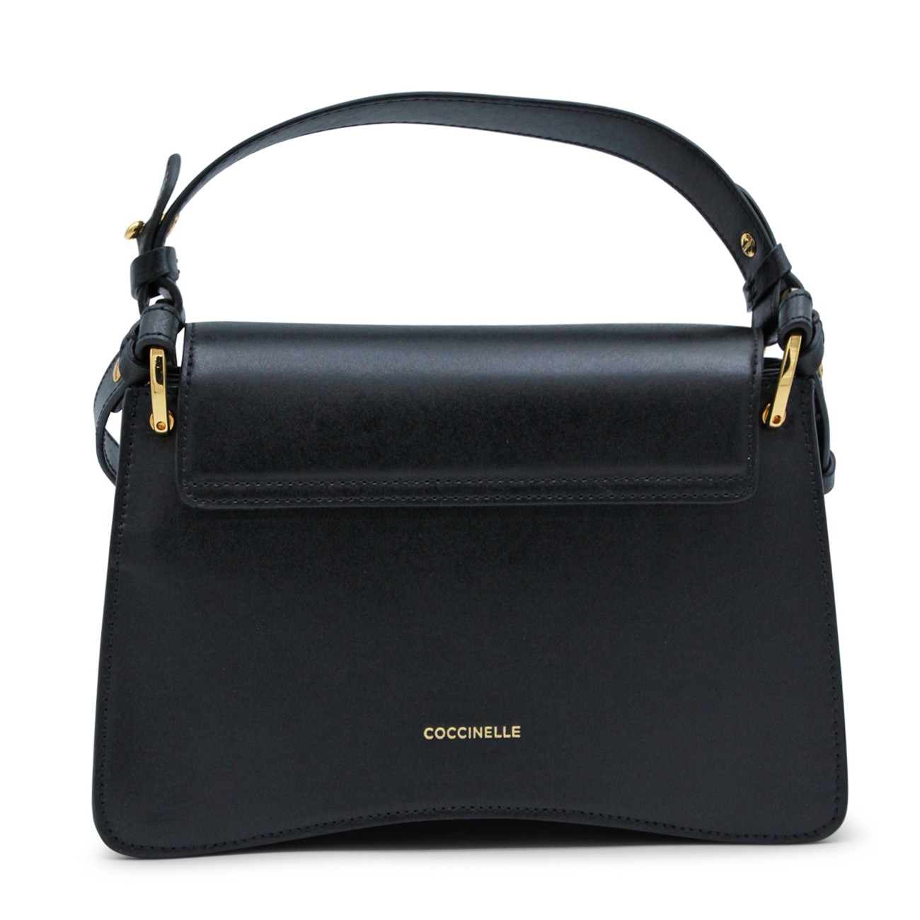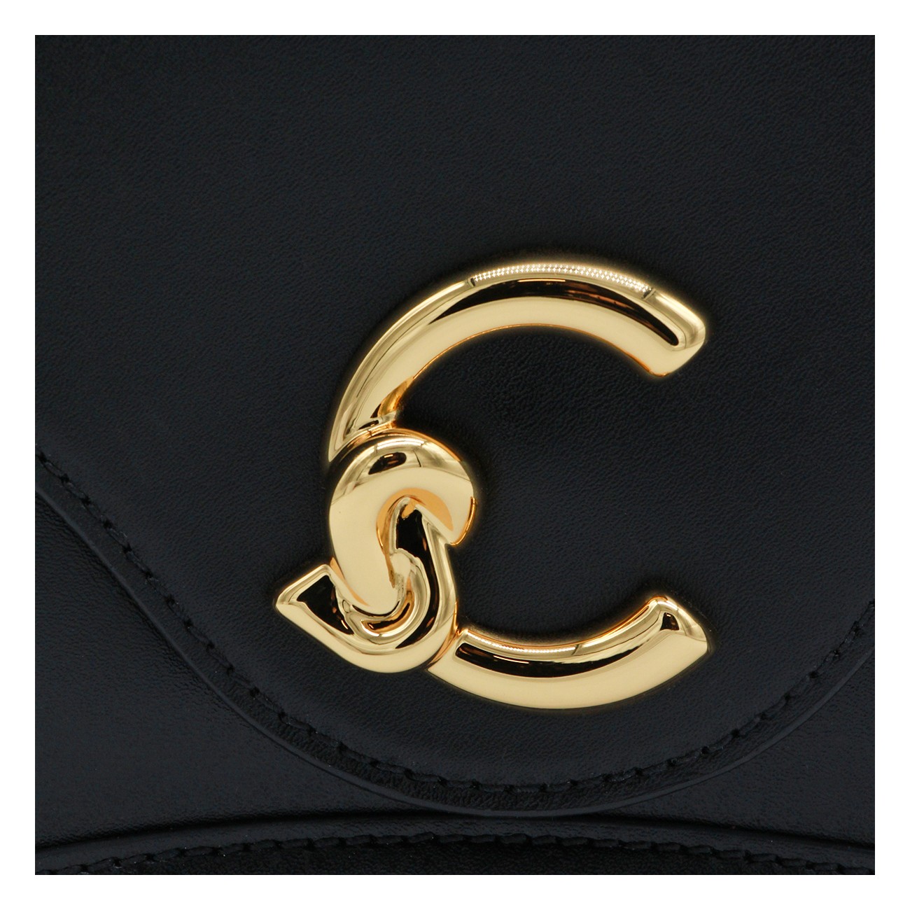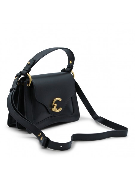 Black leather C-Me Calf Cocker top handle bag from Coccinelle featuring top handles, gold tone logo hardware, adjustable and removable shoulder strap, main compartment, magnetic closure and internal pocket with zip fastening.