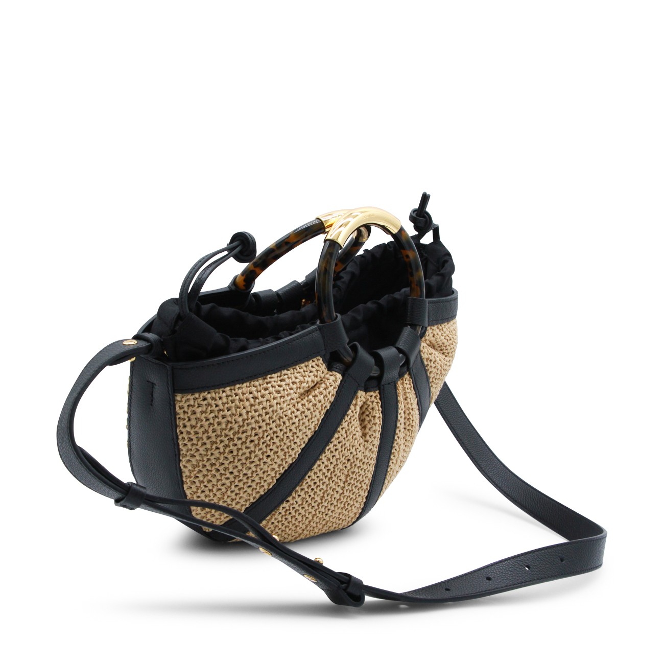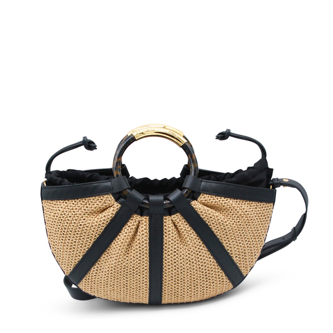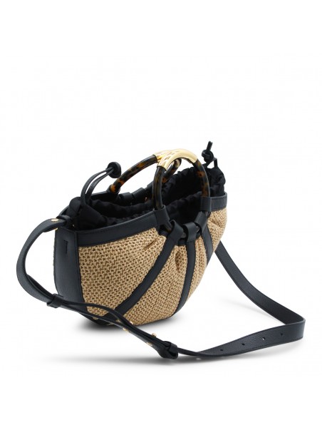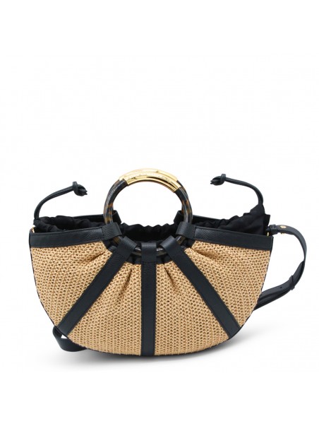 NATURAL AND BLACK LEATHER TOP HANDLE BAG