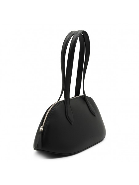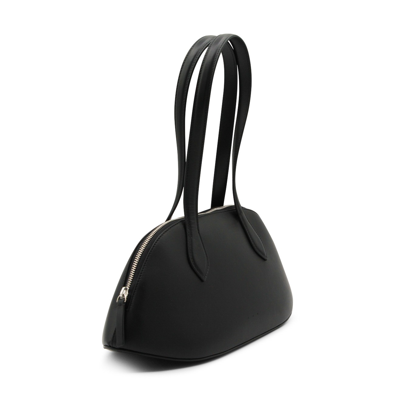 BLACK LEATHER COSMO BOWLING TOP HANDLE BAG