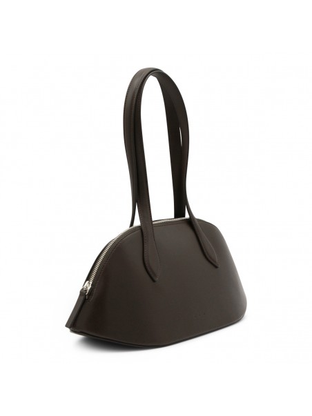 DARK BROWN LEATHER COSMO BOWLING TOP HANDLE BAG