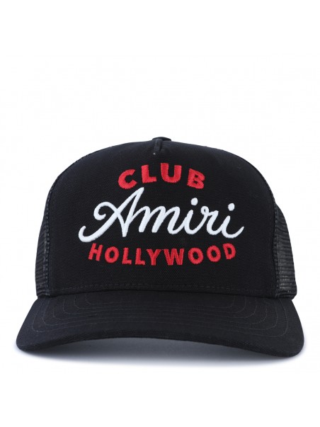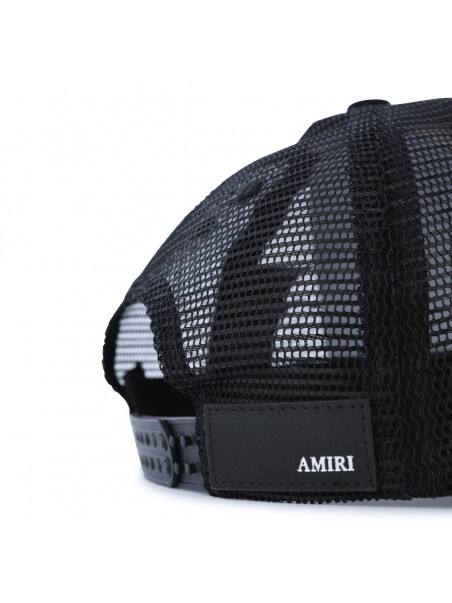 Black baseball cap from Amiri featuring curved peak, logo, slip-on style and adjustable size.