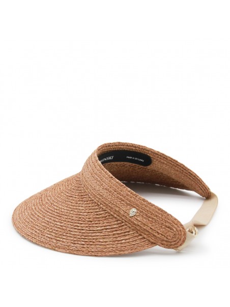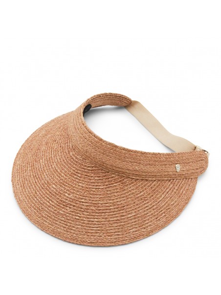 Camel raffia hat from Helen Kaminski featuring slip-on style, wide peak and rear adjustabe fit.