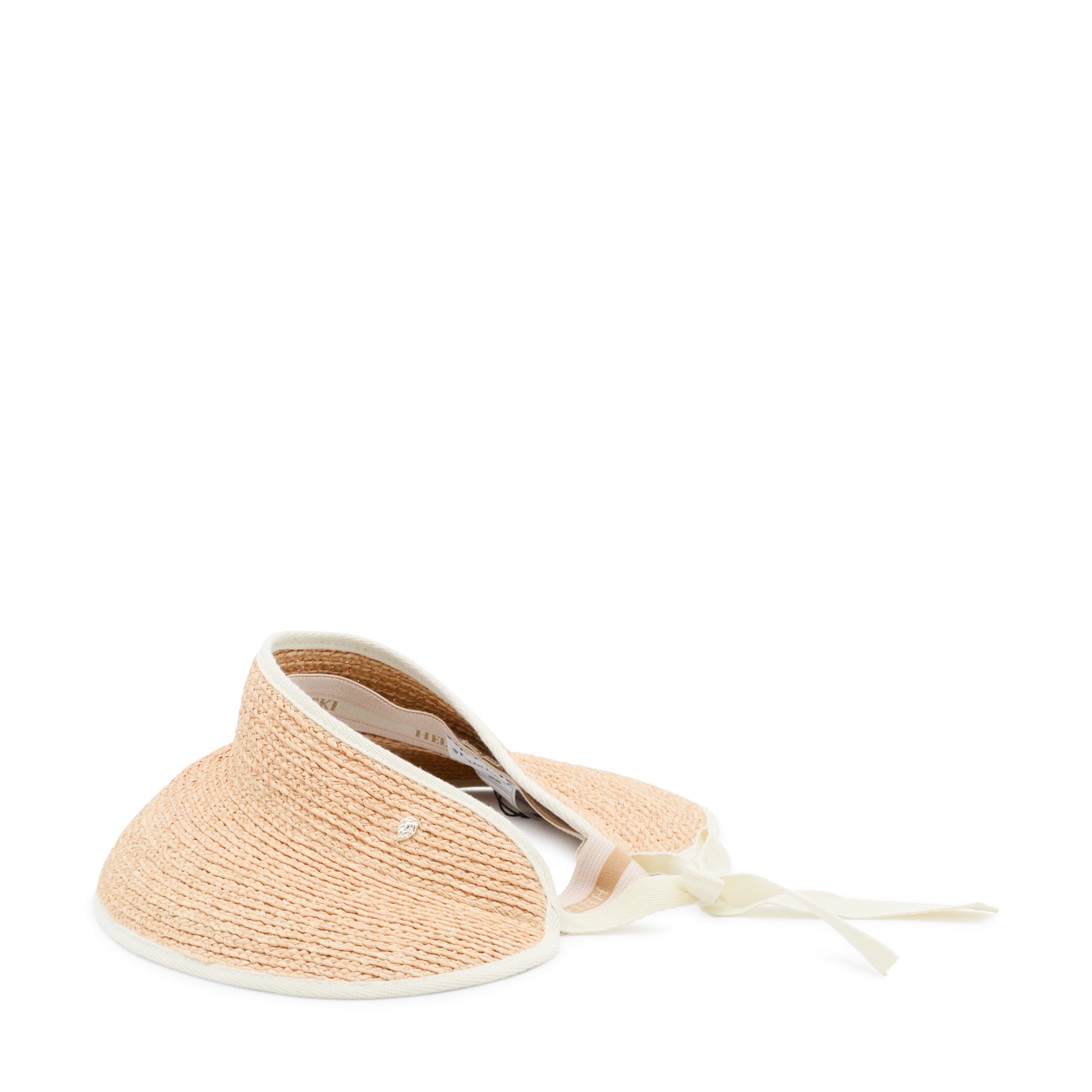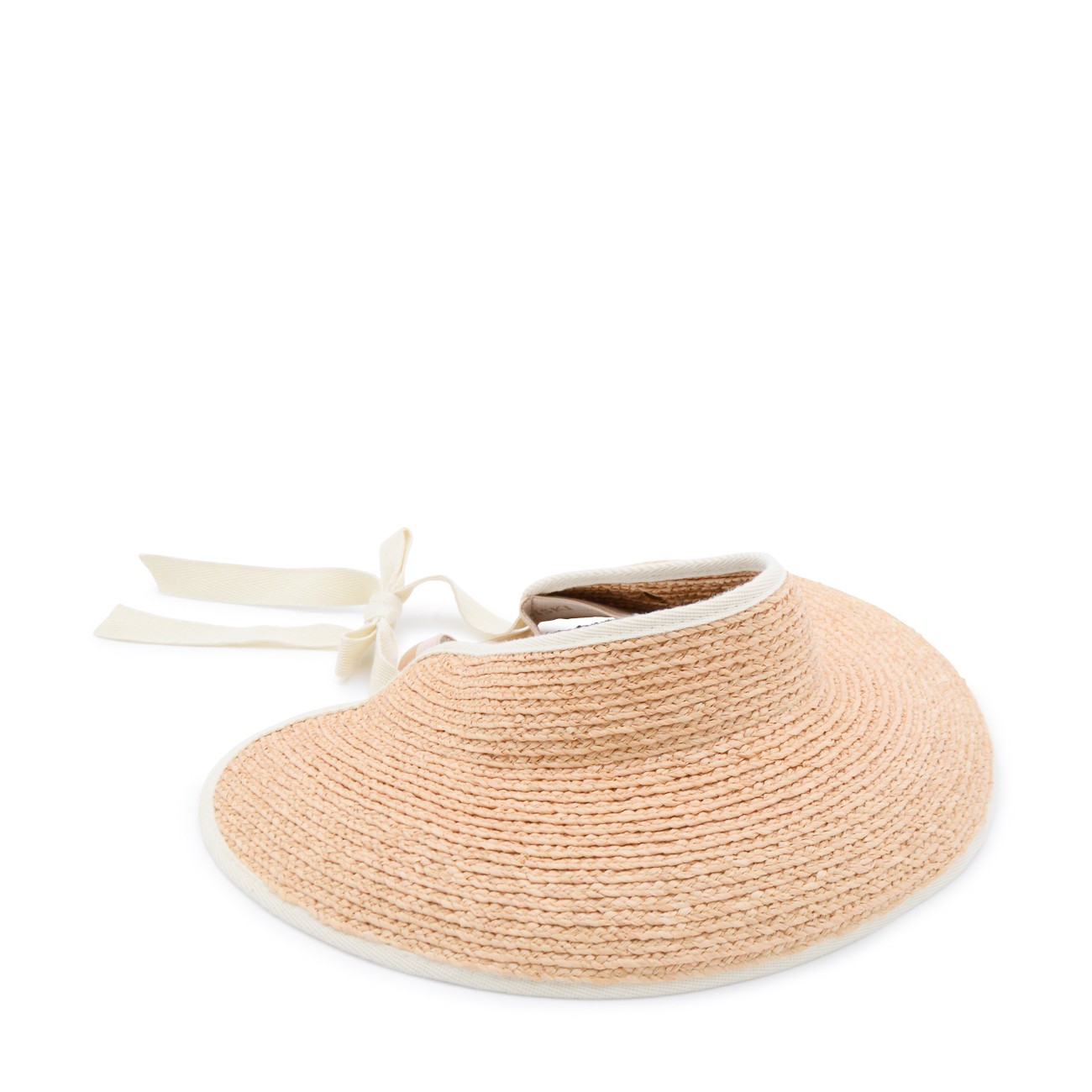 Natural and white raffia Mita hat from Helen Kaminski featuring back fastening, contrasting trims, braided design and logo detail.
