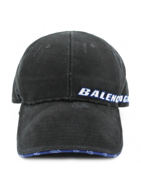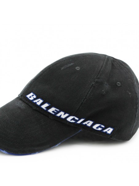 Grey cotton hat from Balenciaga featuring round trim, adjustable size and lateral logo.