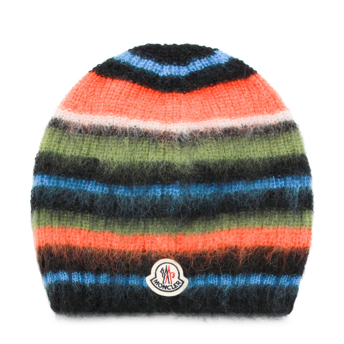 Multicolor hat from Moncler featuring frontal logo patch and soft vestibility.
