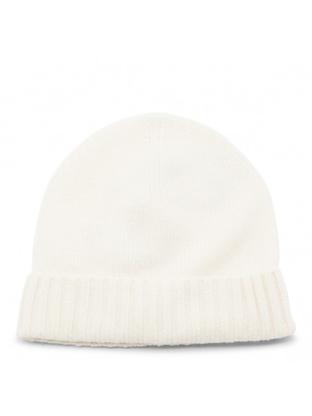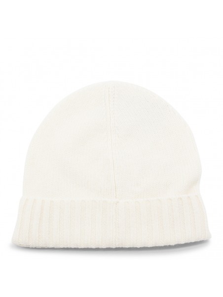 White cashmere beanie from Kujten featuring slip-on style, cashmere and ribbed hem.