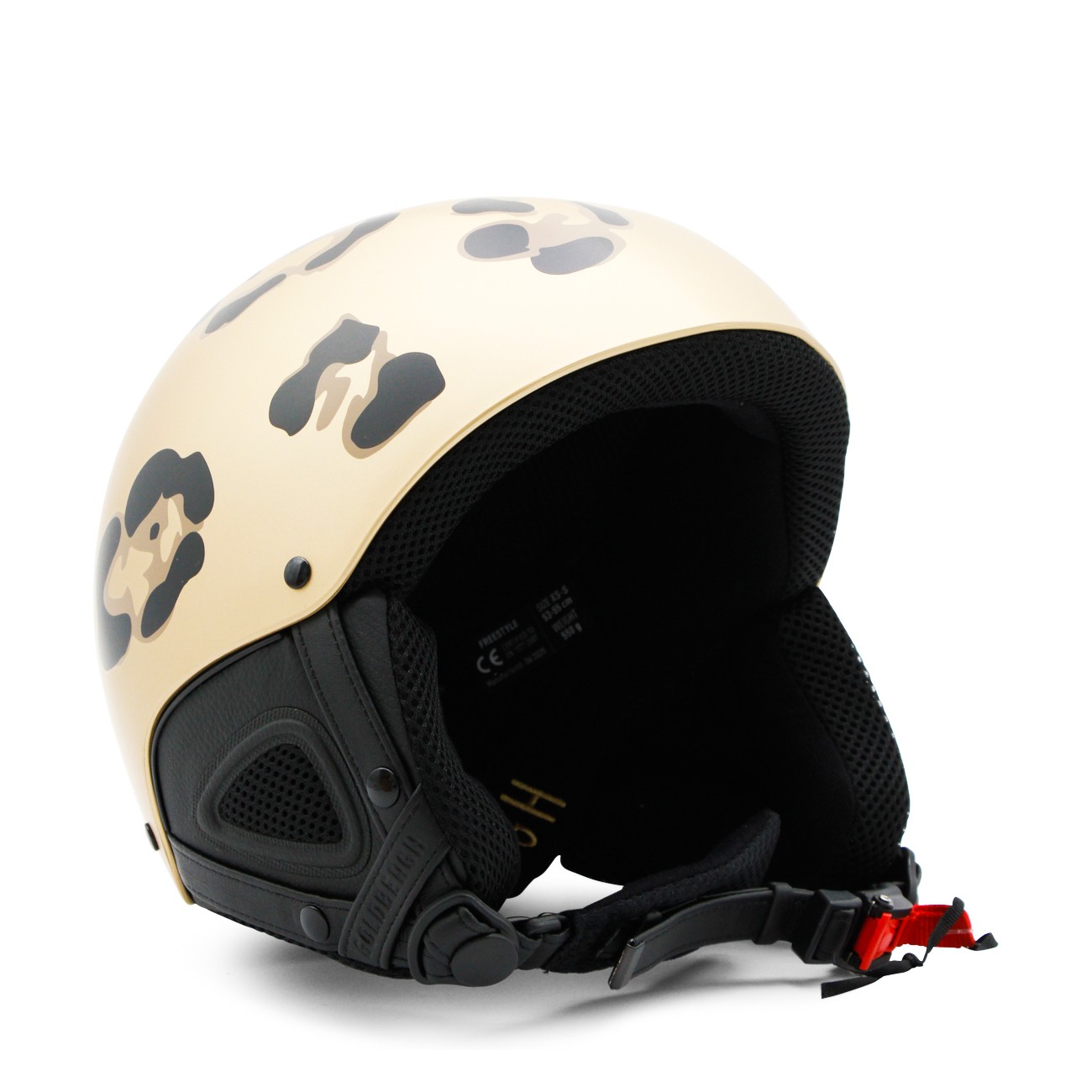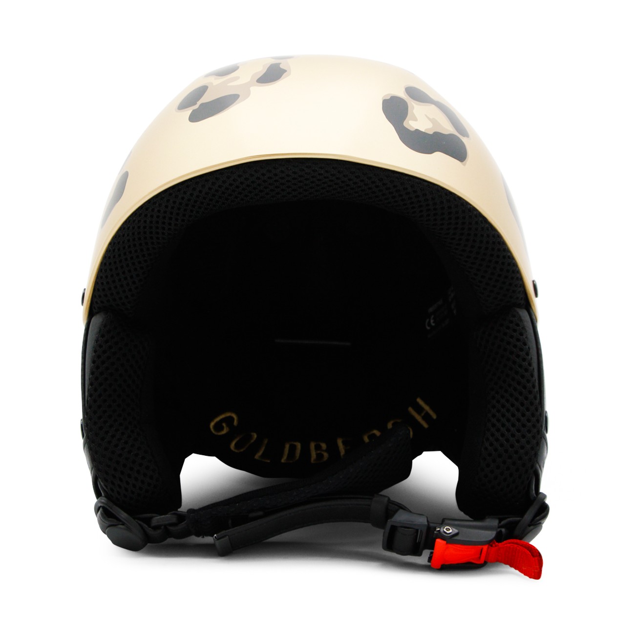 Jaguart helmet from Goldbergh featuring all-over jaguar print, chin strap and interior padding.