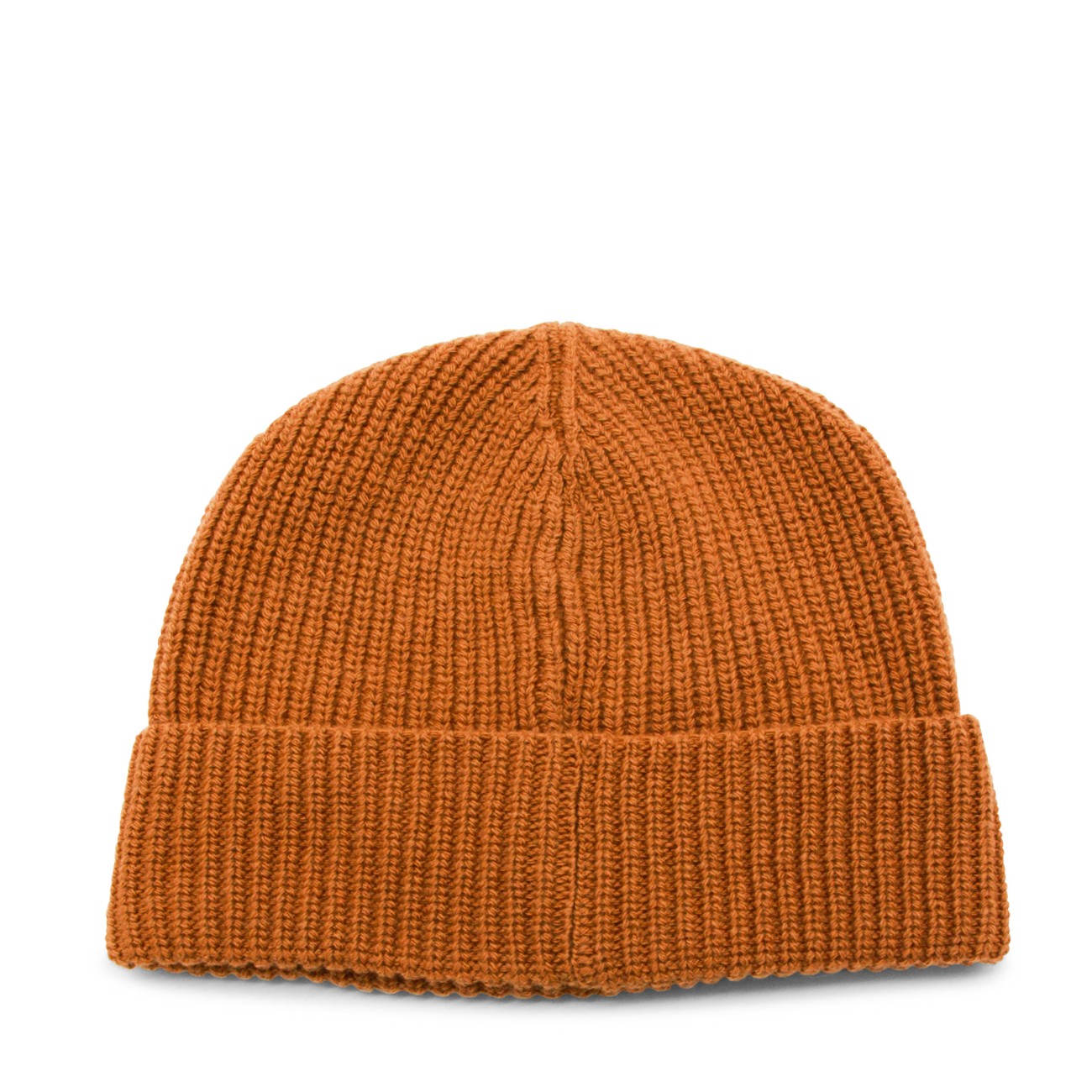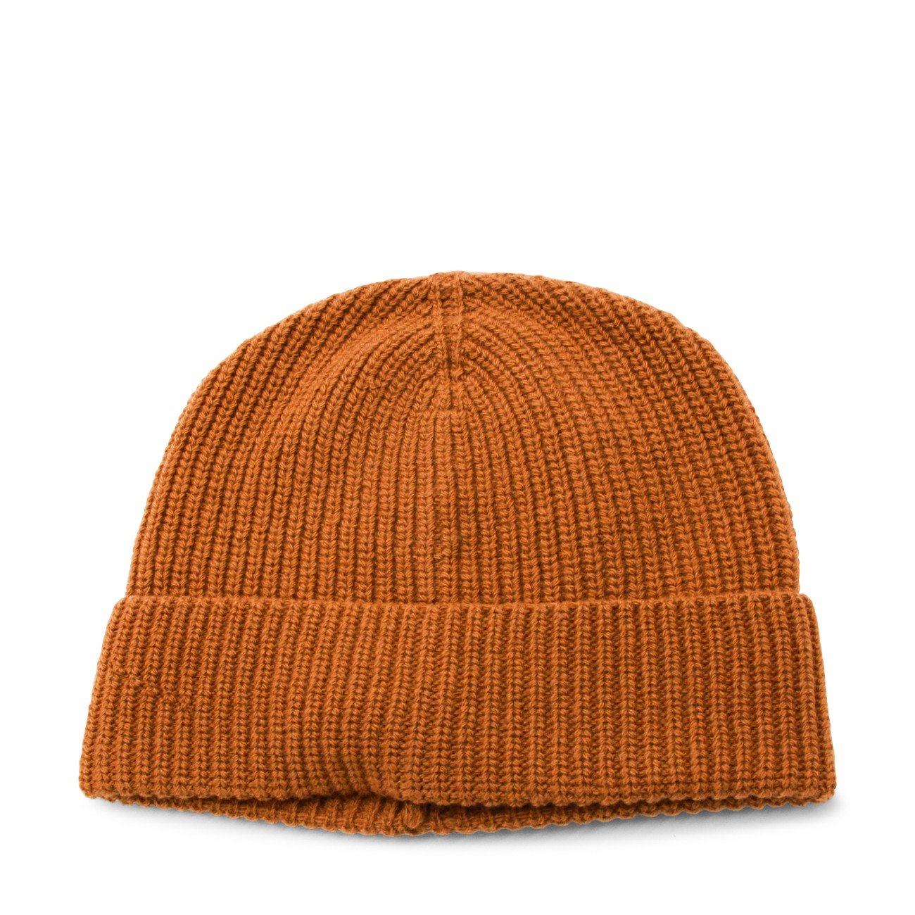 Camel wool beanie from Seven Gauge featuring ribbed trim and turn-up hem.