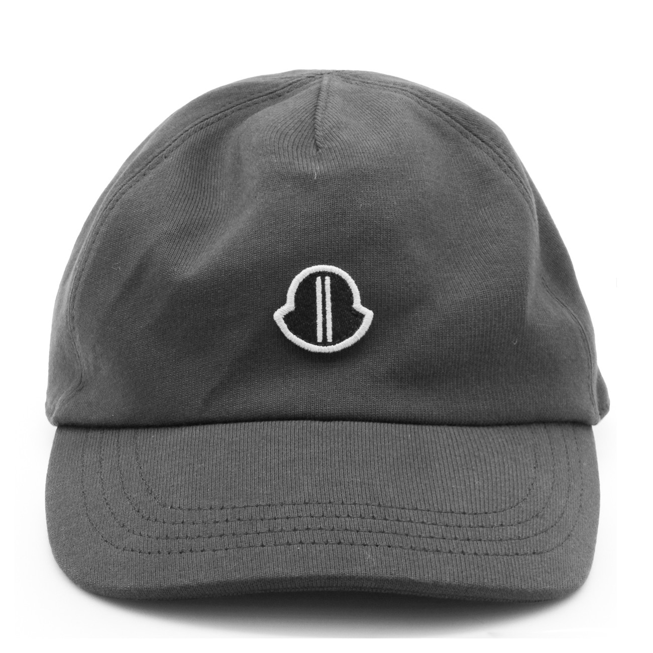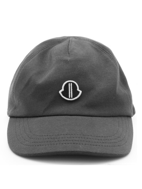 Dark grey cotton hat from Moncler + Rick Owens featuring adjustable tab closure on the back and embroidered logo.