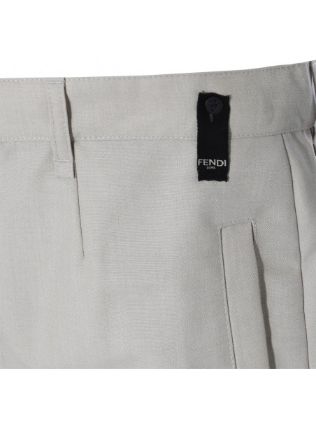 Cream wool shorts from Fendi featuring frontal zip and button fastening, belt loops, pockets and regular vestibility.