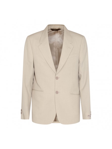 Cream wool blazer from Fendi featuring long sleeves, frontal buttons fastening, round hem, frontal buttons fastening and regular vestibility.