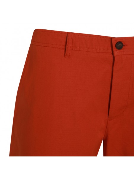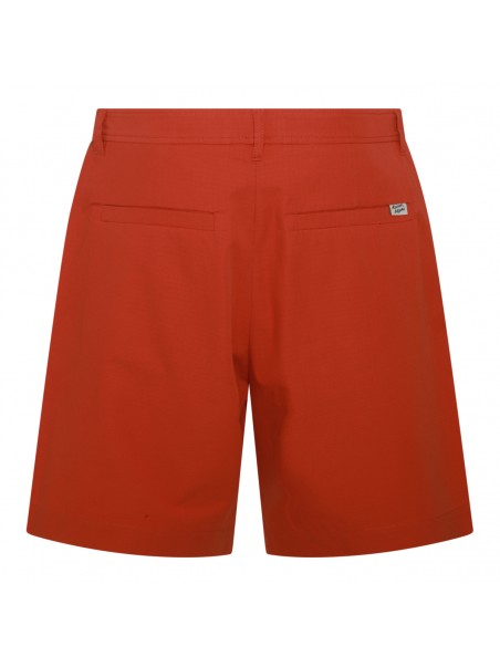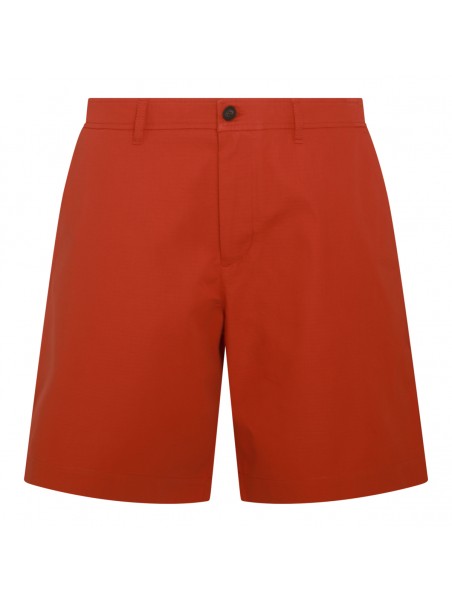 Red cotton shorts from Maison Kitsune featuring frontal zip and button fastening, belt loops, pockets and knee length.