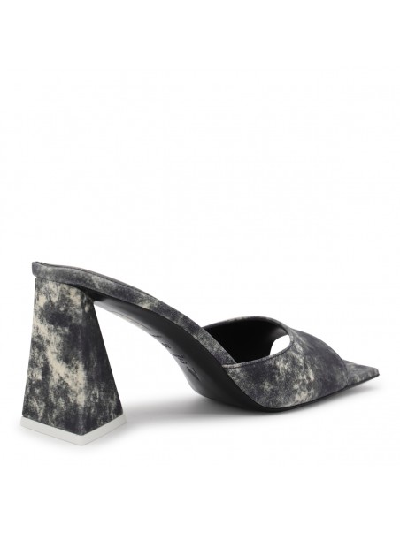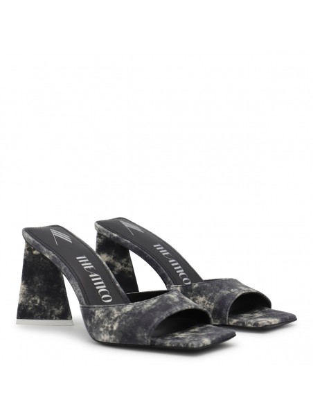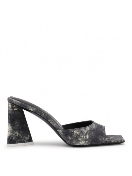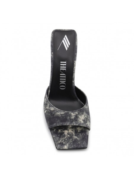 Black and white leather Devon mules from The Attico featuring open toe, mules line, covered block heel and branded insole.