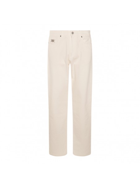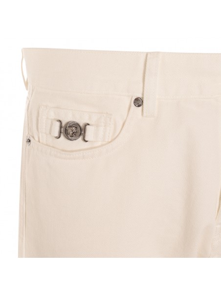 White cotton denim jeans from Versace featuring frontal zip and button fastening, belt loops, regular vestibility and pockets.