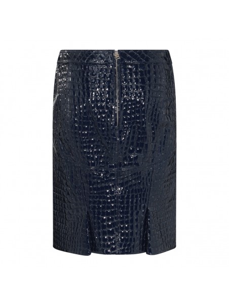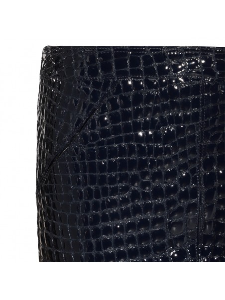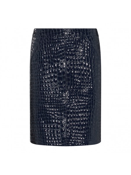 Black leather skirt from Tom Ford featuring back zip fastening, croco print, pockets, midi length.