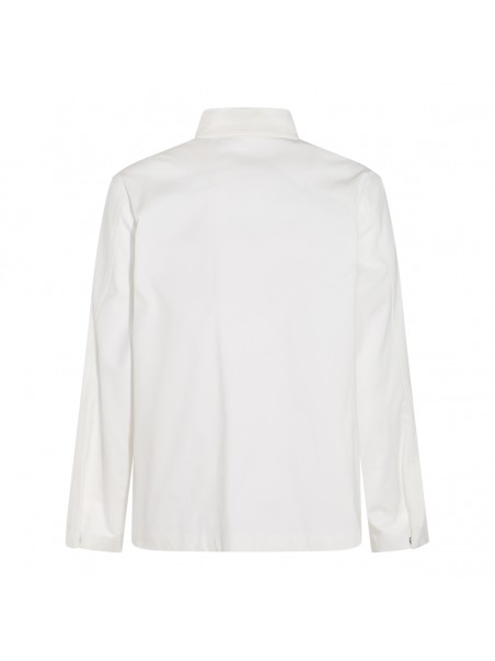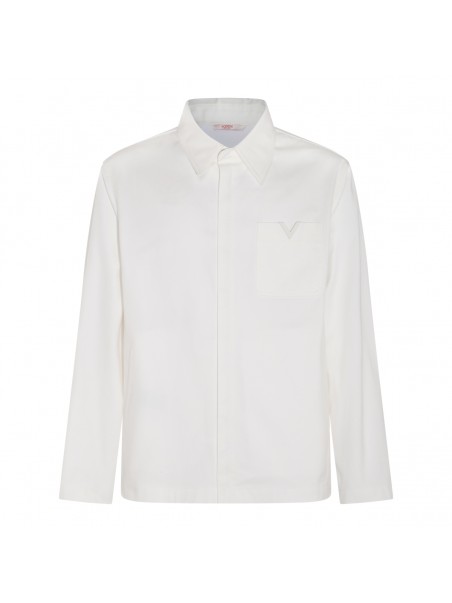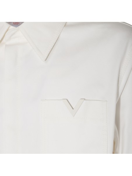 White cotton blend shirt from Valentino featuring classic collar, front button fastening, long sleeves, buttoned cuffs, logo plaque at the chest, chest patch pocket and straight hem.