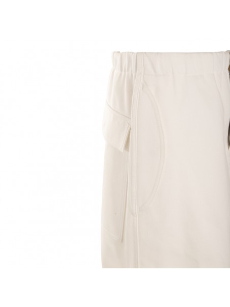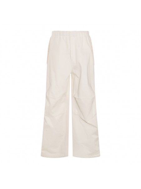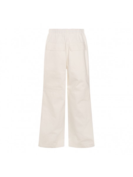 White cotton pants from Jil Sander featuring frontal zip and button fastening, elasticizated waist, regular vestibility and pockets.