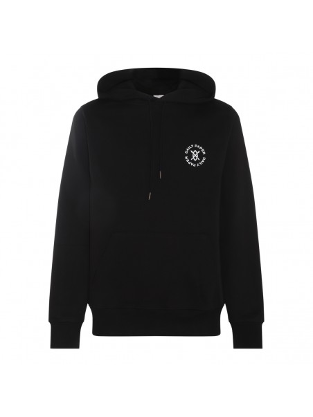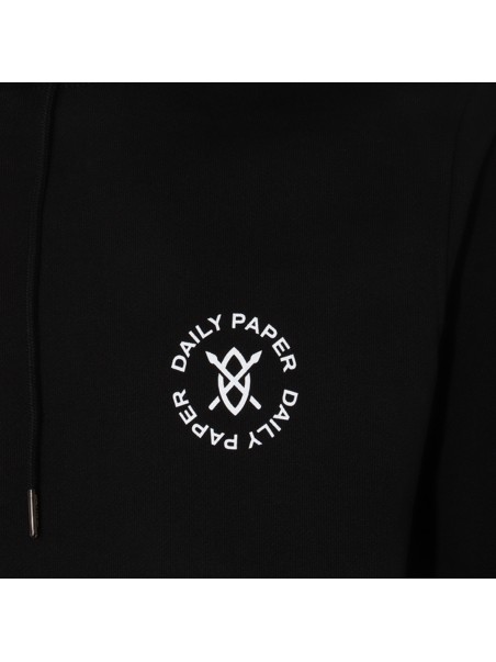 Black and white cotton sweatshirt from Daily Paper featuring classic drawstring hood, long sleeves, logo print at the chest and straight hem.