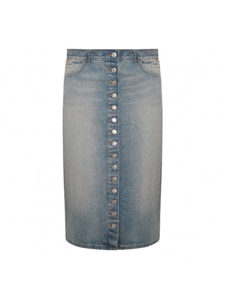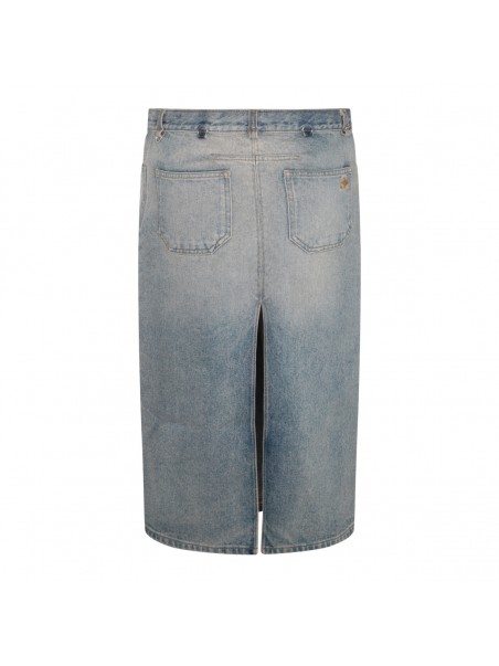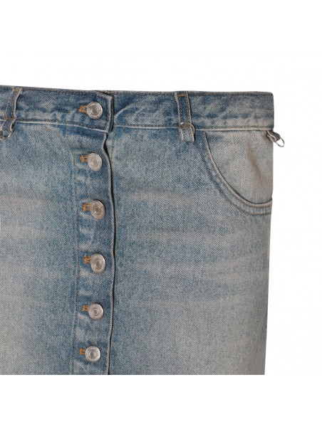 Blue cotton denim skirt from Courreges featuring frontal buttons fastening, midi length, belt loops, back slit, two back pockets and regular vestibility.