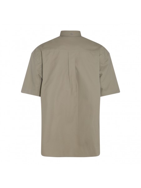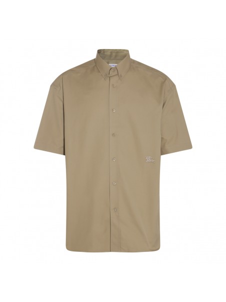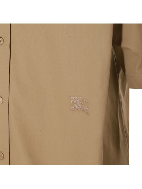 Beige cotton shirt from Burberry featuring classic collar, front button fastening, embroidered logo to the front, short sleeves and straight hem.