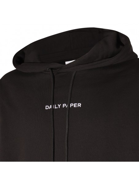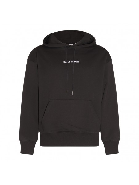 Black cotton Elevin sweatshirt from Daily Paper featuring long sleeves, hoodie with drawstring, kangaroo pockets, logo at front and ribbed cuffs.