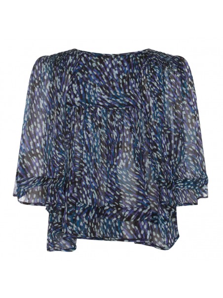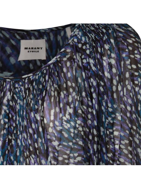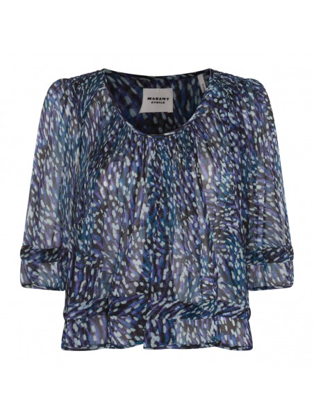 Blue viscose shirt from Marant Etoile featuring round collar, 3/4 sleeeves, frontal fastening, trasparence and laces and soft vestibility.