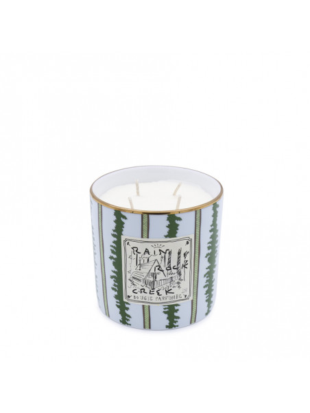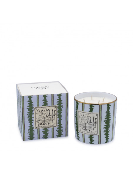 Designer large scented candle Rain Rock Creek from Luchino's Souvenirs for Ginori featuring pure porcelain body and a burning time of about 50 hours.