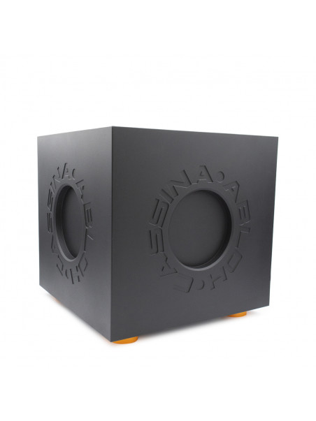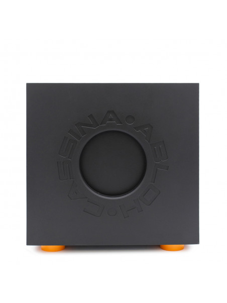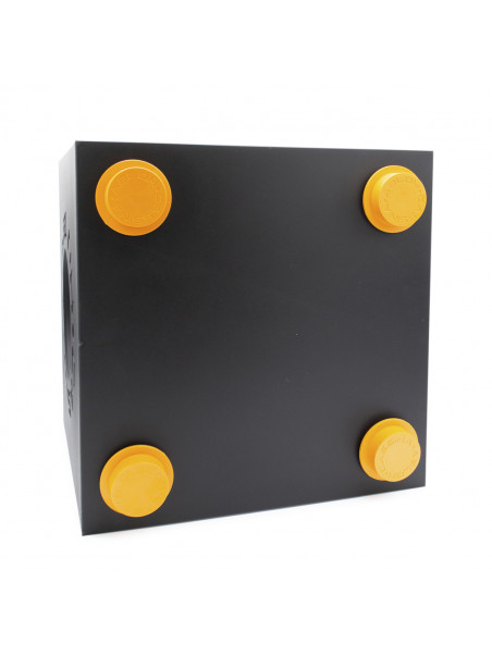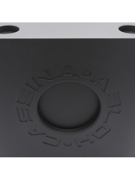Mat black recycled wood block from Cassina featuring rubber feet, front logo embossed and essambled design.