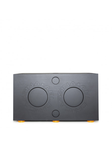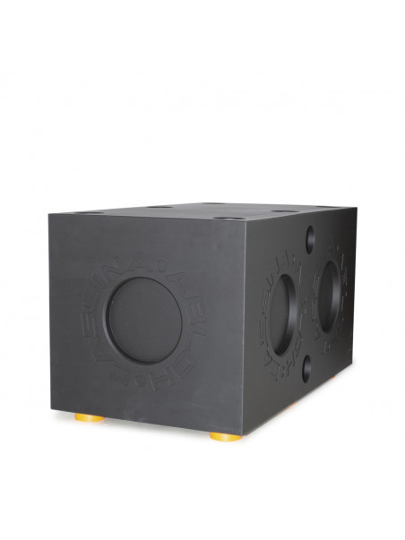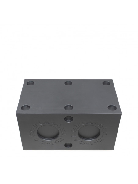 Mat black recycled wood block from Cassina featuring rubber feets, front embossed logo and essambled design.