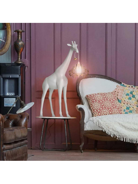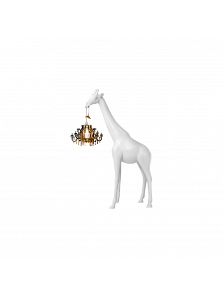 White Giraffe in Love XS featuring a Marie-The style chandelier, ideal for LED lightbulbs. Can be used as either a floor or desk lamp.