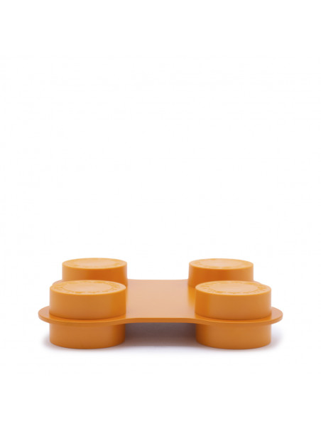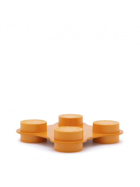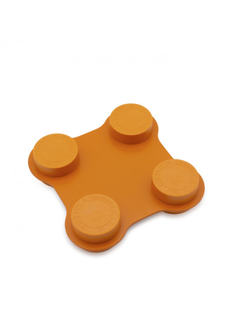 Orange quadruple connecting element from Cassina featuring front embossed logo and round design.