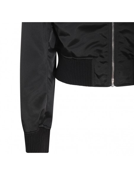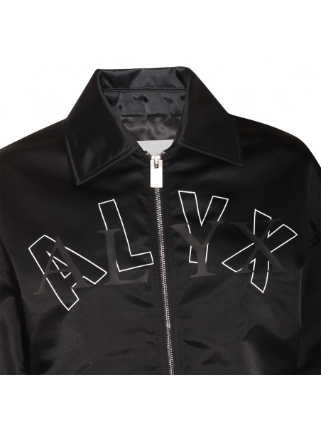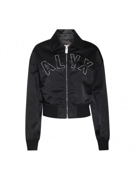Black nylon logo bomber jacket from 1017 Alyx 9SM featuring lon sleeves, side pockets, logo on the front and zip closure.