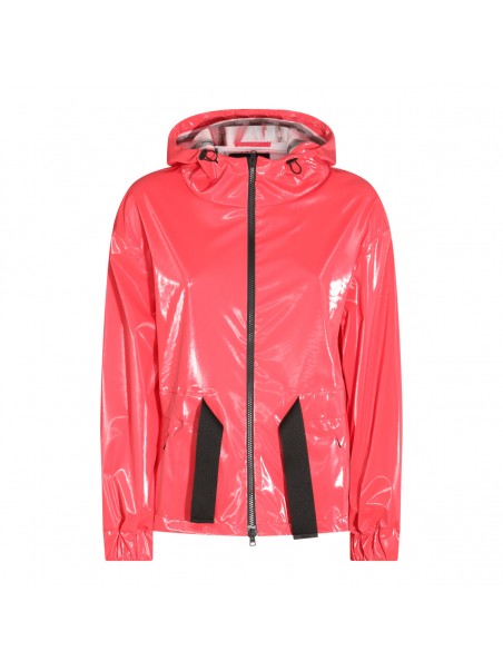Paradise Pink Lady Bird Laminar casual jacket from Herno featuring zip closure, hoodie with drawstring, slash side pockets and contrasting details.