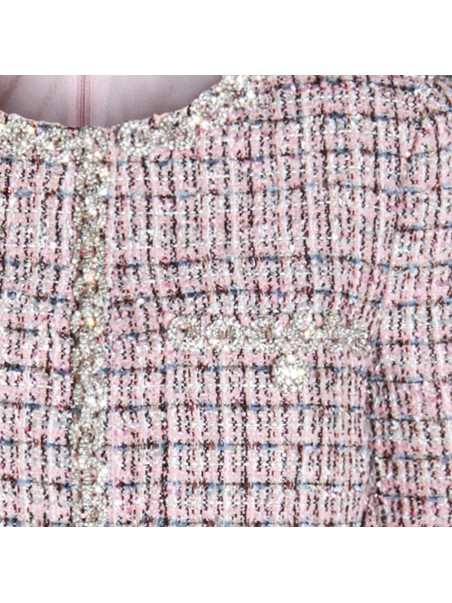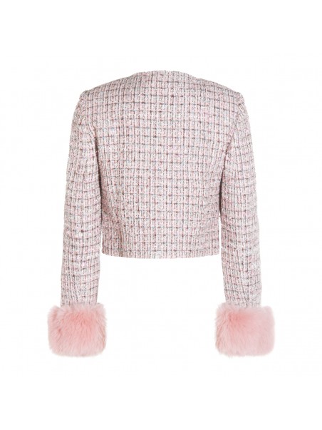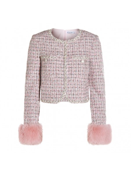 Pink wool casual jacket from Self-Portrait featuring round collar, pockets, frontal fastening and cuffs with detail.