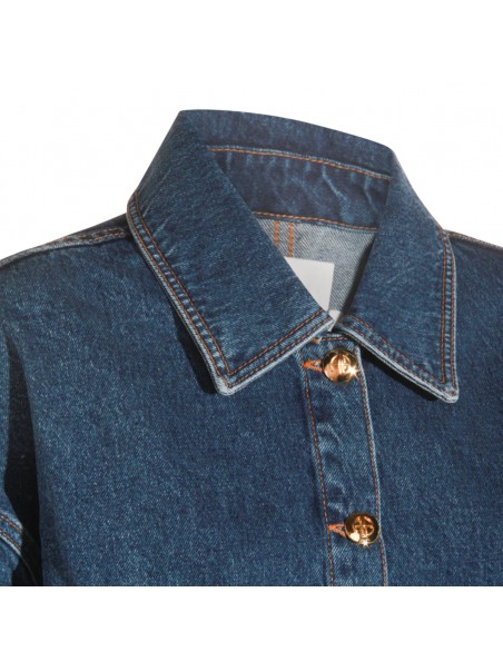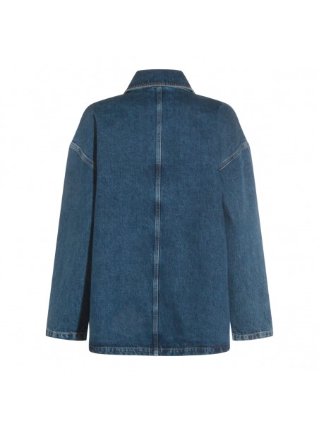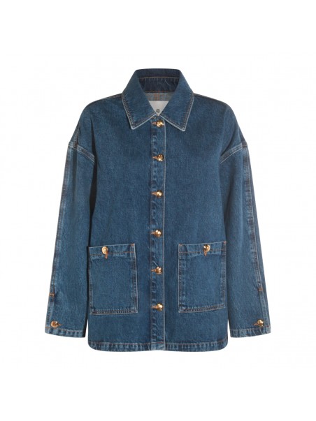 Blue cotton denim jacket from Anine Bing featuring long sleeves, buttons fastening, pockets and regular vestibility.