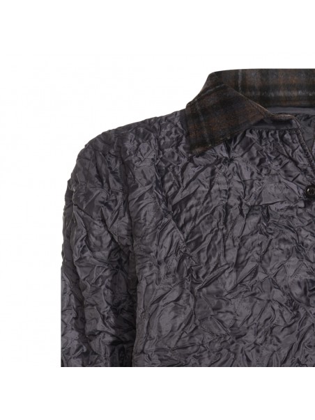 Dark grey wool casual jacket from Maison Margiela featuring classic collar, long sleeves, buttons fastening and regular vestibility.