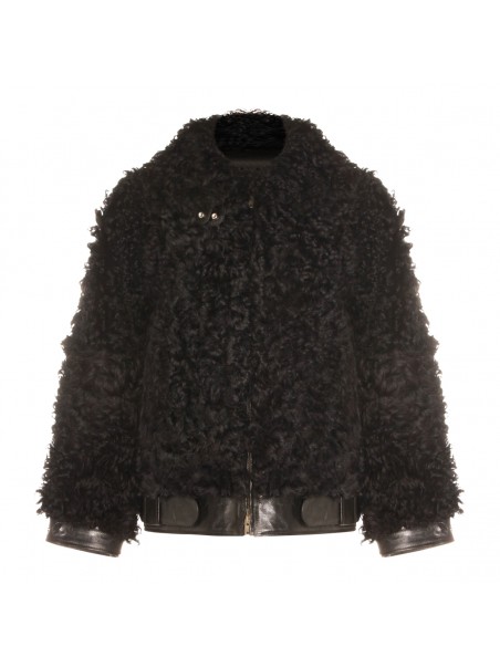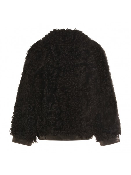 Black leathet jacket from Golden Goose featuring long sleeves, pockets, frontal fastening, gold tone hardware, logo detail and regular vestibility.