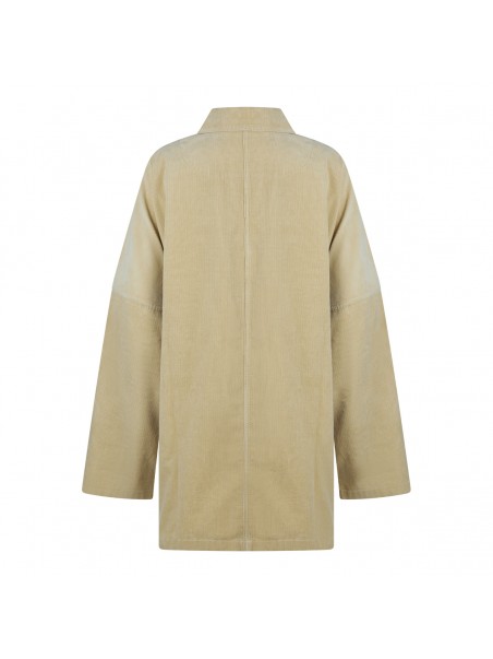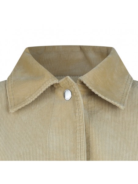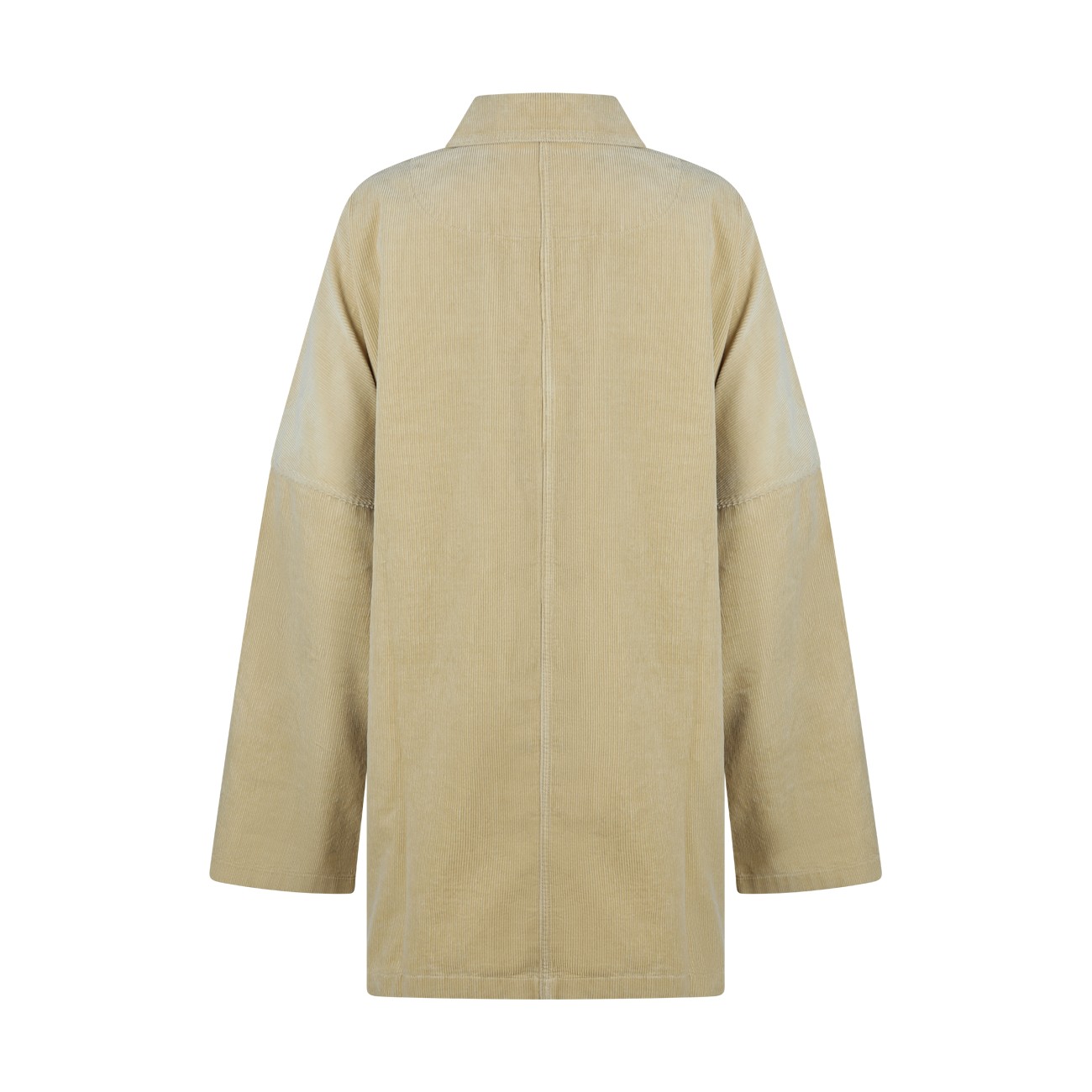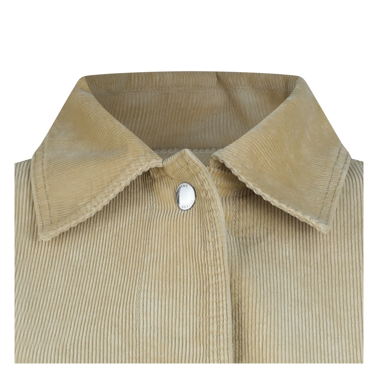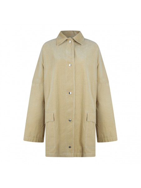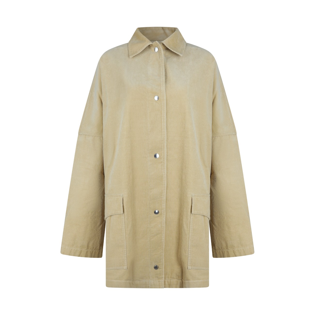 Beige cotton casual jacket from Toteme featuring pointed collar, snap front closure, long sleeves, flap pockets, straight hem, silver tone hardware and oversize vestibility.