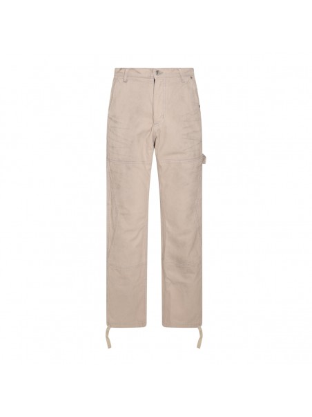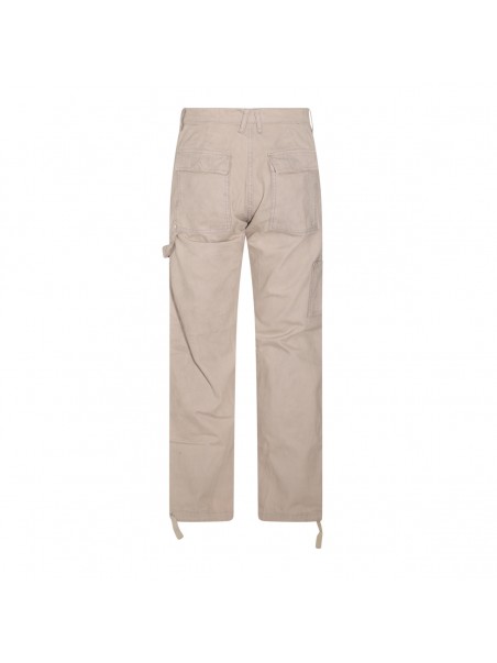 Cream denim jeans from Rhude featruing wide leg, high waist, zip/button closure, belt loops and drawstring at bottoms.