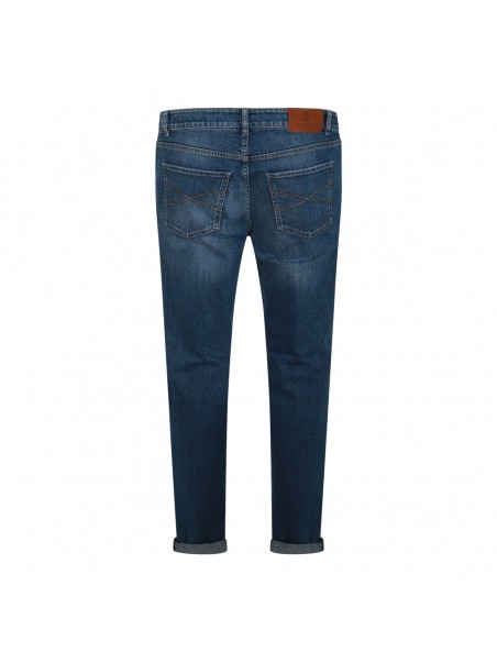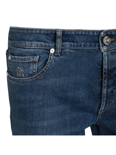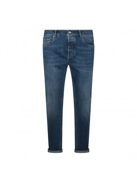 Blue cotton denim jeans from Brunello Cucinelli featuring frontal zip fastening, belt loops and regular vestibility.